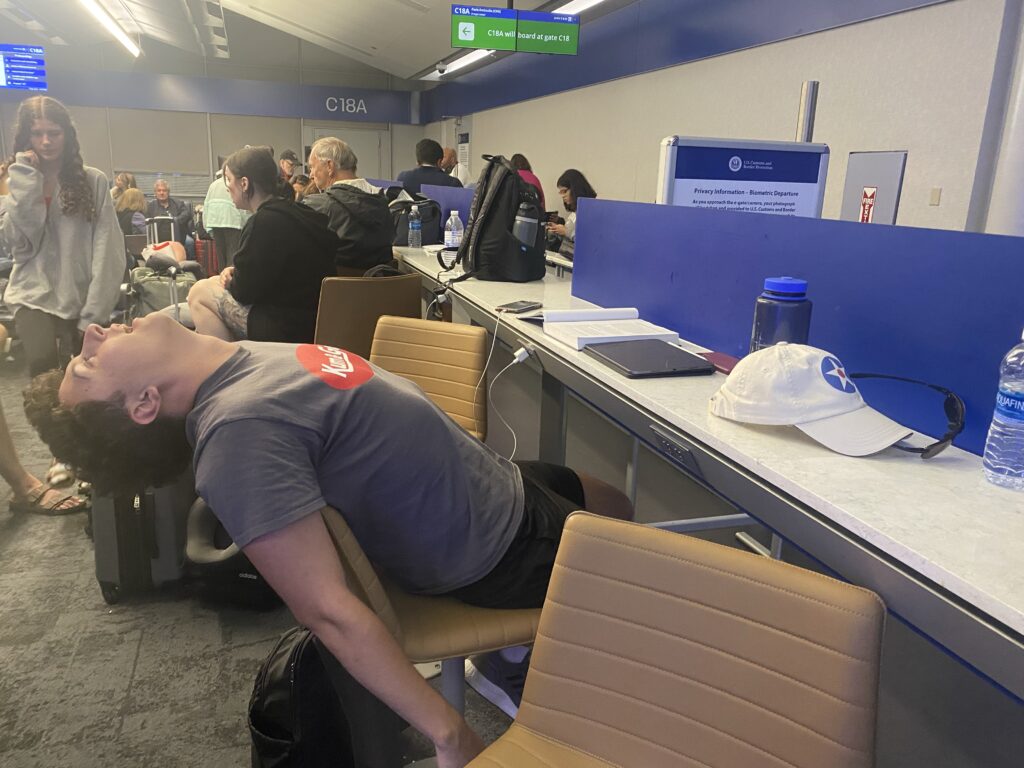 Estimated time of departure is now 11:30pm, versus 6:15 scheduled. The natives in the boarding area are getting restless, yelling at the gate agent whenever he comes on the PA… poor guy.
