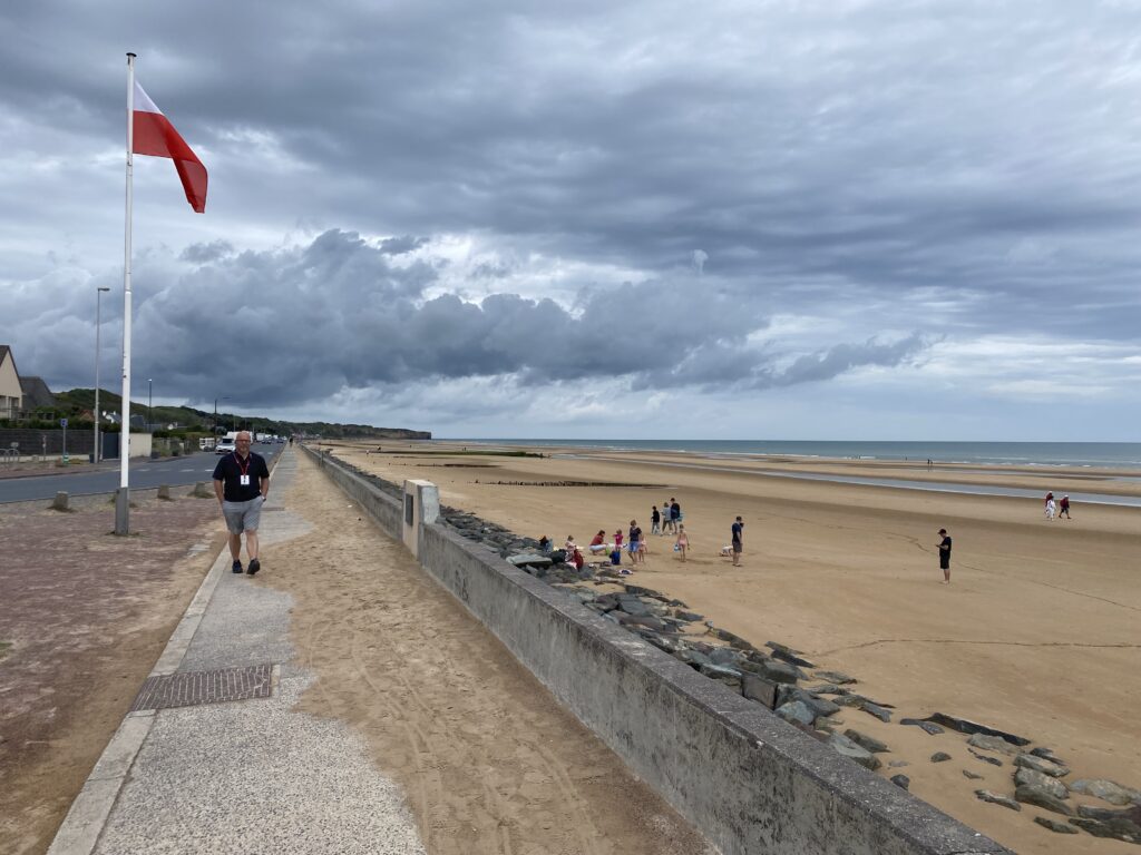 Sorry folks, posting this a bit out of order. Omaha beach was one of the bloodiest and unforgiving of the 5 beaches on D-Day. Between ineffective air bombardment, high seas swamping many of the tanks intended to support the troops, currents pushing many landing craft East of where they were supposed to land, and absolutely wicked defenses designed by Erwin Rommel, it was a blood-bath for many of the first boots to hit the ground. The worst was probably in the Western sector of Omaha, Dog Green 1. This point was strategically vital, as it had the only paved road off the beach. Troops in this part of the landing suffered 90% casualties, including 20 from a small town in Bedford, VA, which only had 5,000 residents. Many of these fallen heros are buried at the Normandy cemetery.